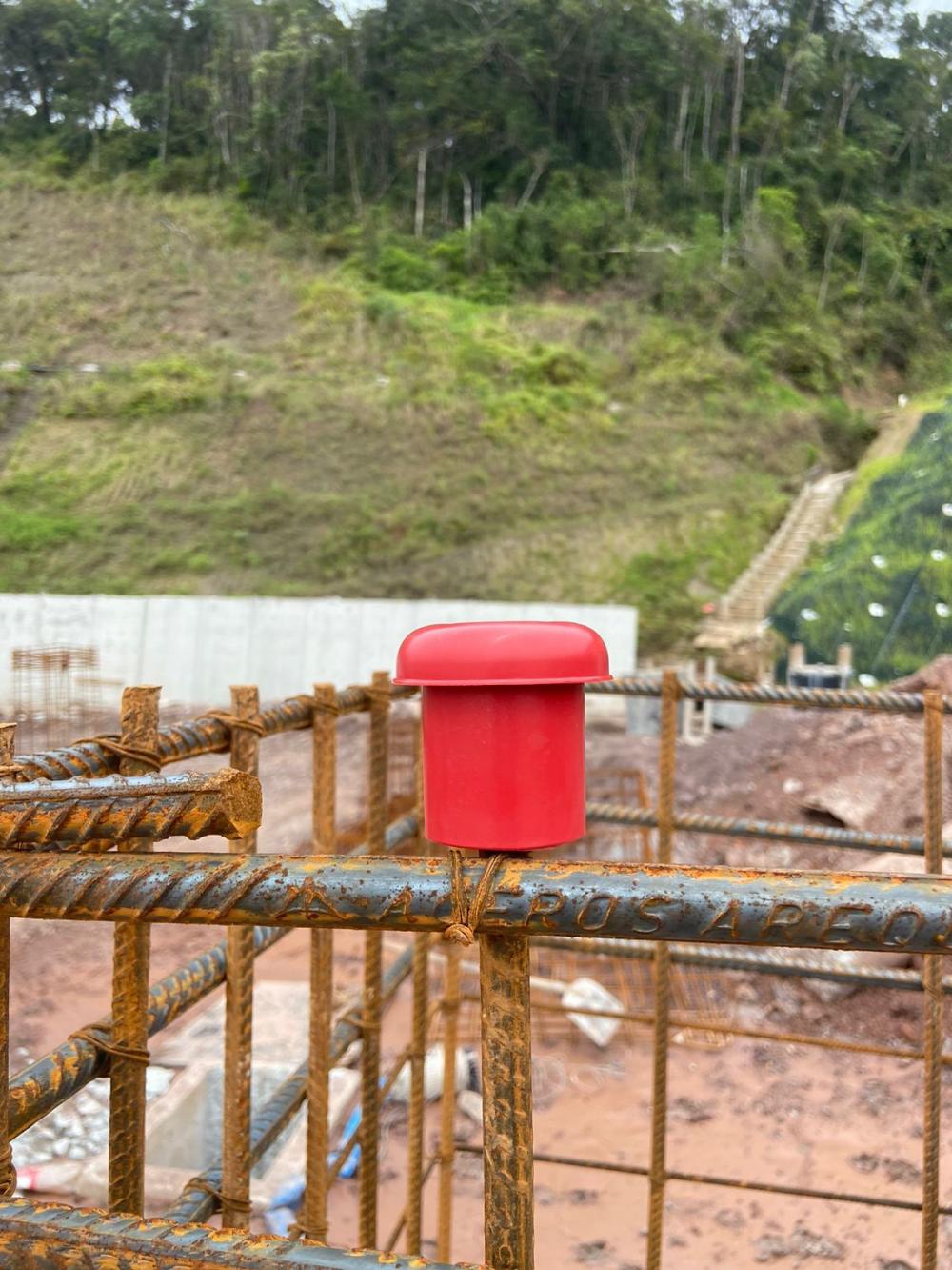 Protetor de Vergalhão PA, Projetado para utilização em vergalhões e ferragens sendo um elemento importante na minimização de acidentes perfurantes com as Pontas dos Ferros. Recomendado para Sinalizar e prevenir acidentes nas obras da construção civil.